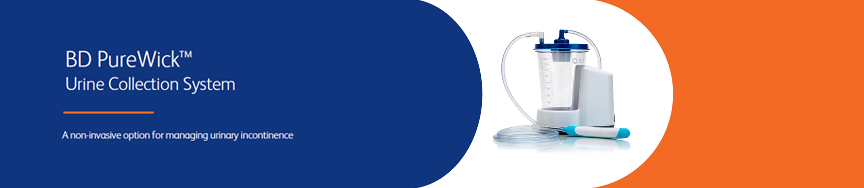 The BD PureWick™ Urine Collection System is an innovative option to managing urinary incontinence. The BD PureWick™ Urine Collection System is comprised of two devices: the BD PureWick™ External Catheter (available in female and male) which captures urine that is drawn away by the BD PureWick™ Urine Collection Canister.